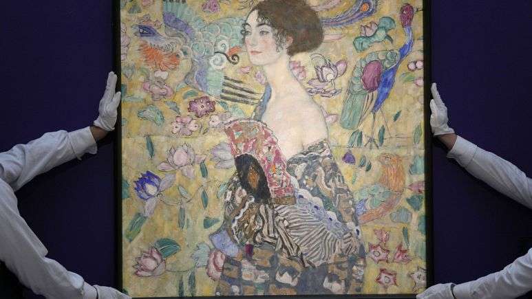 Klimt’in ölmeden önceki son portresi Yelpazeli Kadın (Dame Mit Facher) Londra’da Sotheby’s Müzayede Evi’nde satışa çıkarıldı. Açık artırma öncesi 76 milyon euro değer biçilen tablo, bütün tahminleri alt üst etti.