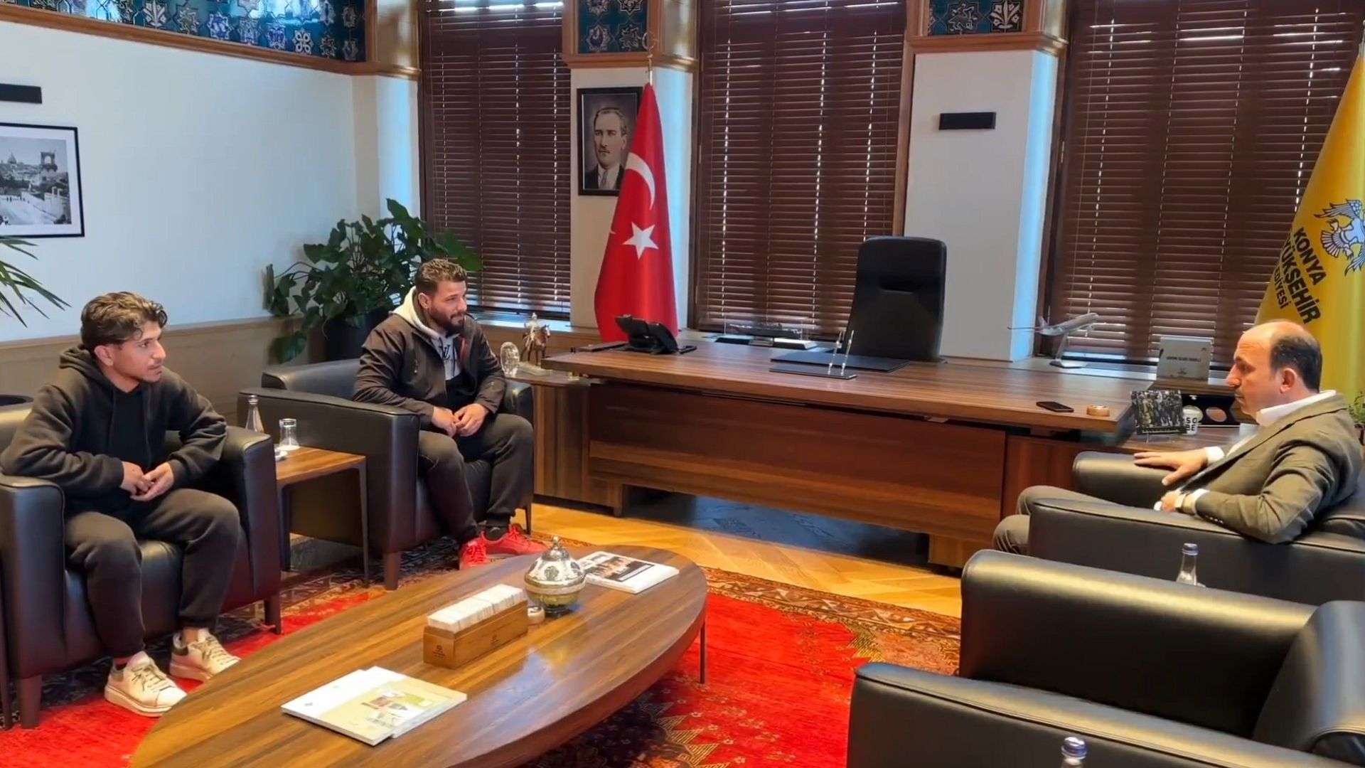 Konya Büyükşehir Belediye Başkanı Uğur İbrahim Altay, binanın yıkılacağını önceden fark edip insanları uyaran Suriyeli mülteci Ali El Hüseyin ve ağabeyi Muhammed El Hüseyin’i pazartesi günü makamında ağırladı.