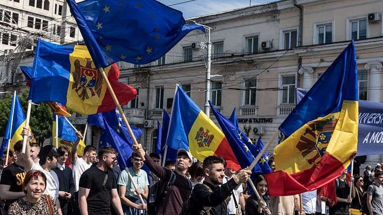 Moldova’nın başkenti Kişinev’de, ülkenin Avrupa Birliği’ne girmesini talep eden yaklaşık 75 bin kişi sokağa indi.