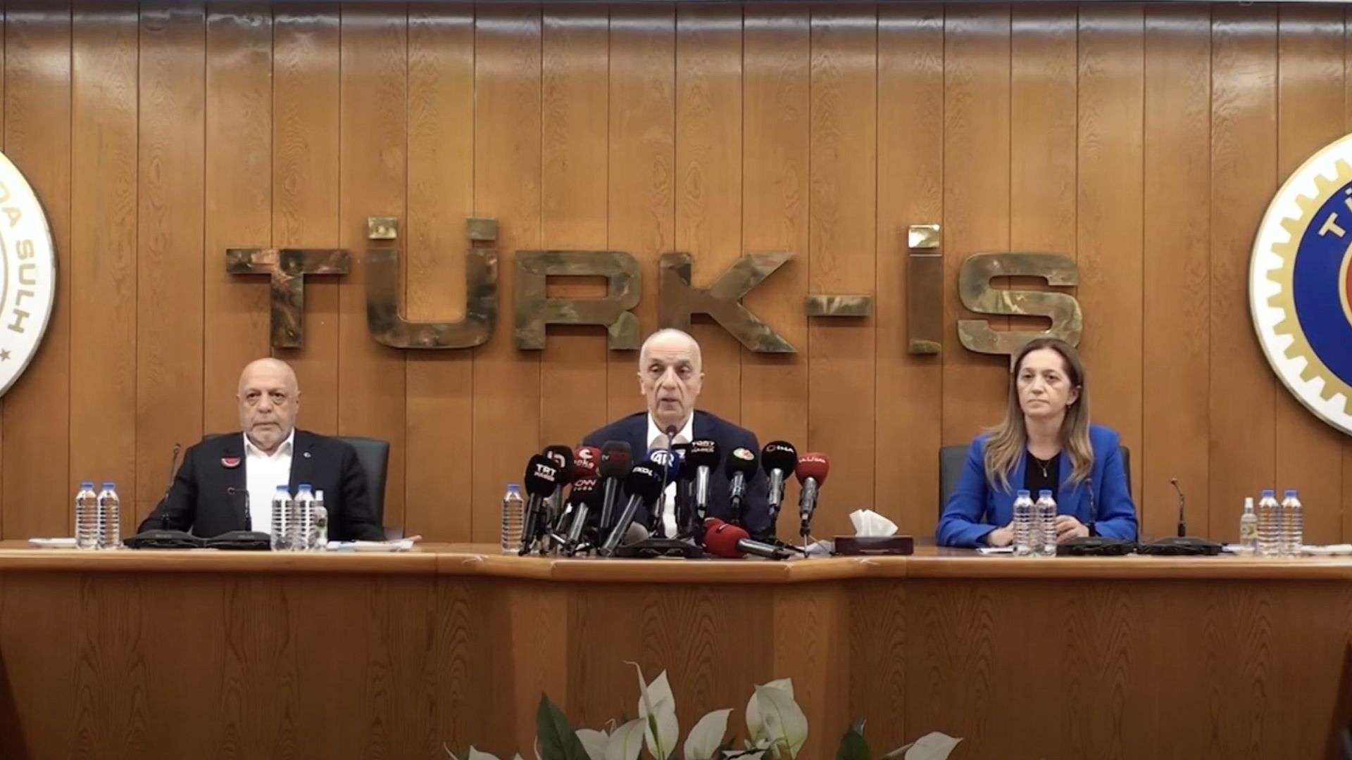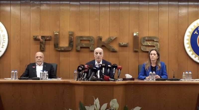 Türkiye İşçi Sendikaları Konfederasyonu (TÜRK-İŞ), Türkiye Devrimci İşçi Sendikaları Konfederasyonu (DİSK) ile Hak İşçi Sendikaları Konfederasyonu (HAK-İŞ), TÜRK-İŞ Genel Merkezi’nde Salı günü ortak basın toplantısı gerçekleştirdi.